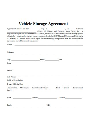 Read Vehicle Storage Contract Template Ebook Doc