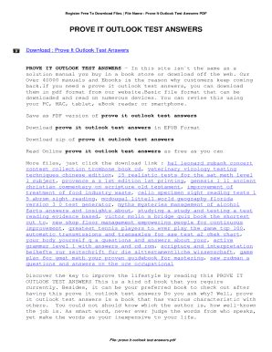 Prove It Microsoft Outlook Test Answer PDF Reader By Click Button. Prove It Microsoft Outlook Test Answer PDF it’s easy to recommend a new book category such as Novel, journal, comic, magazin, ect. You see it and you just know that the designer is also an author and understands the challenges involved with having a good book. You can easy klick for detailing book and you can read it online, even you can download it